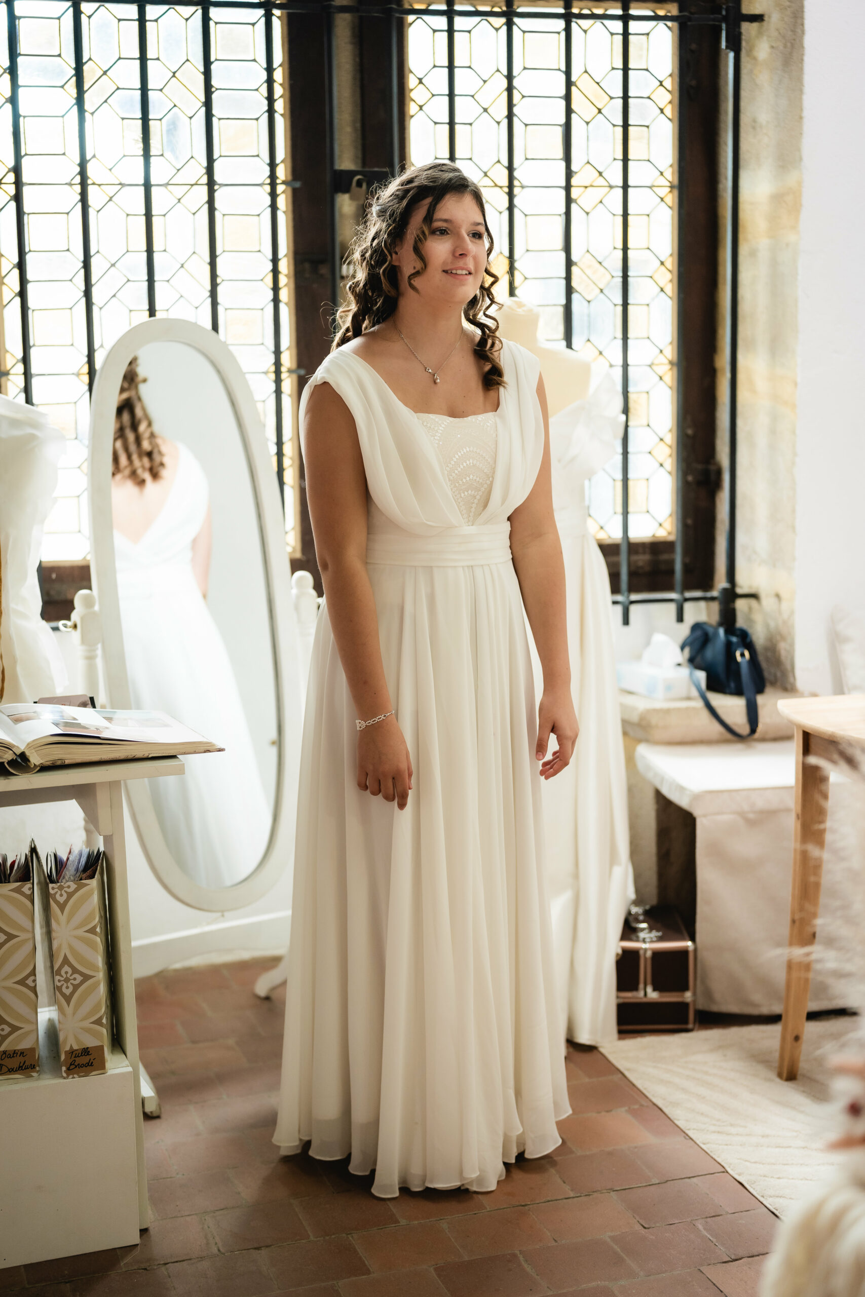 Entre rires, échanges et émotions partagées, ces deux jours ont été riches en belles rencontres. J’ai eu la chance de présenter cinq modèles portés par de magnifiques mariées, toutes différentes et rayonnantes — une belle représentation de la diversité des styles et des personnalités que j’aime tant célébrer à travers mes créations.