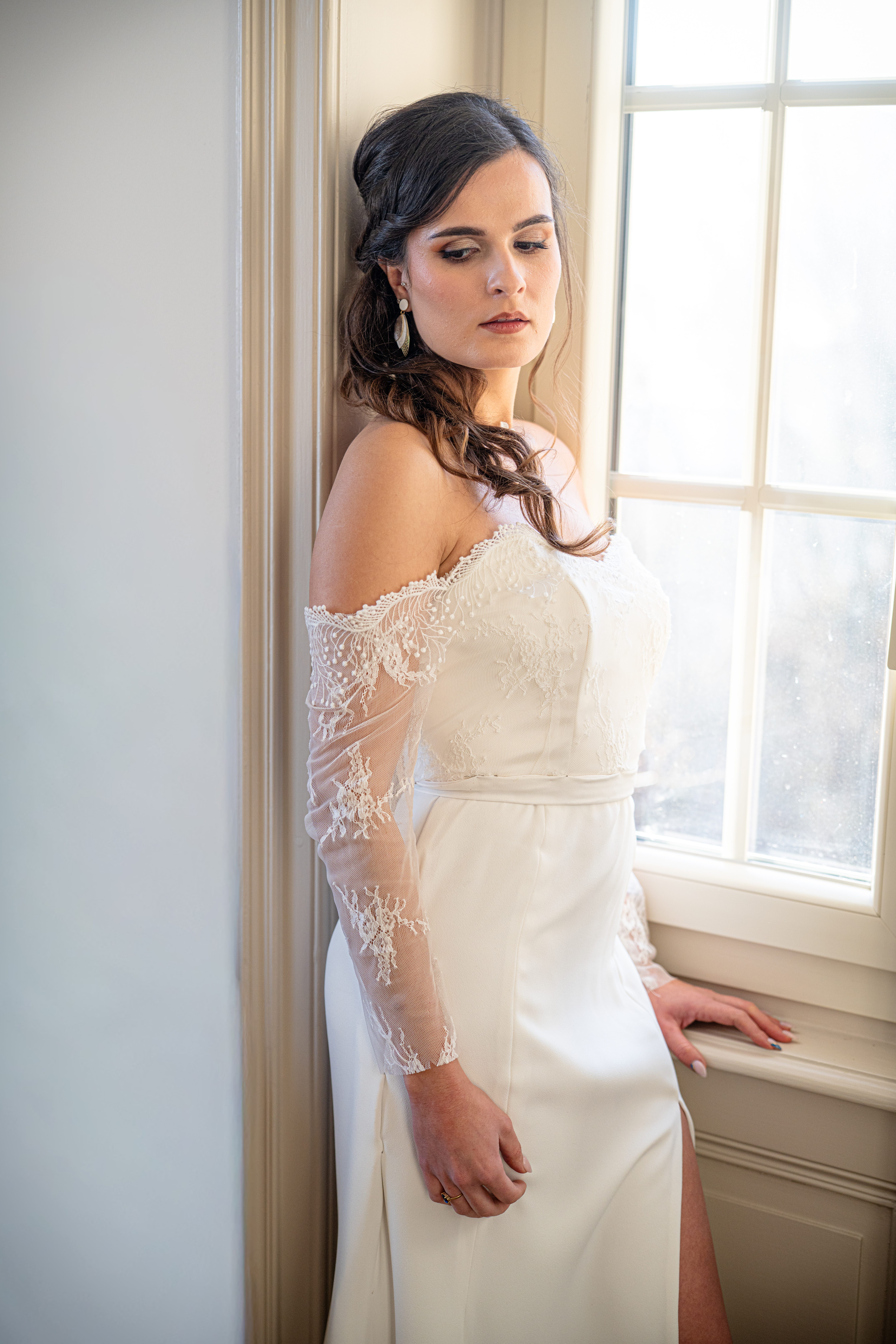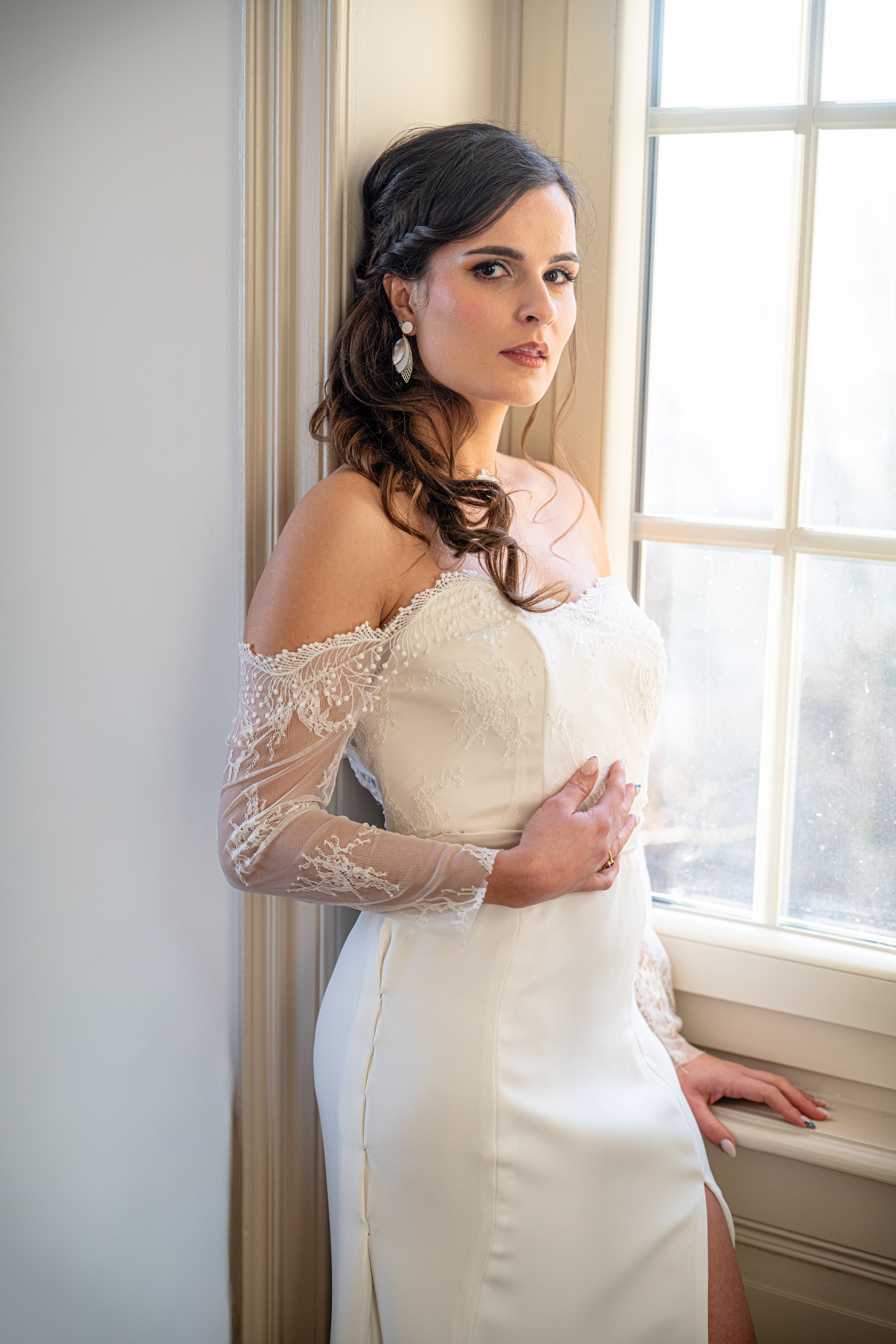 Le décolleté subtilement dégagé laisse place à la lumière, sans jamais perdre en délicatesse.
