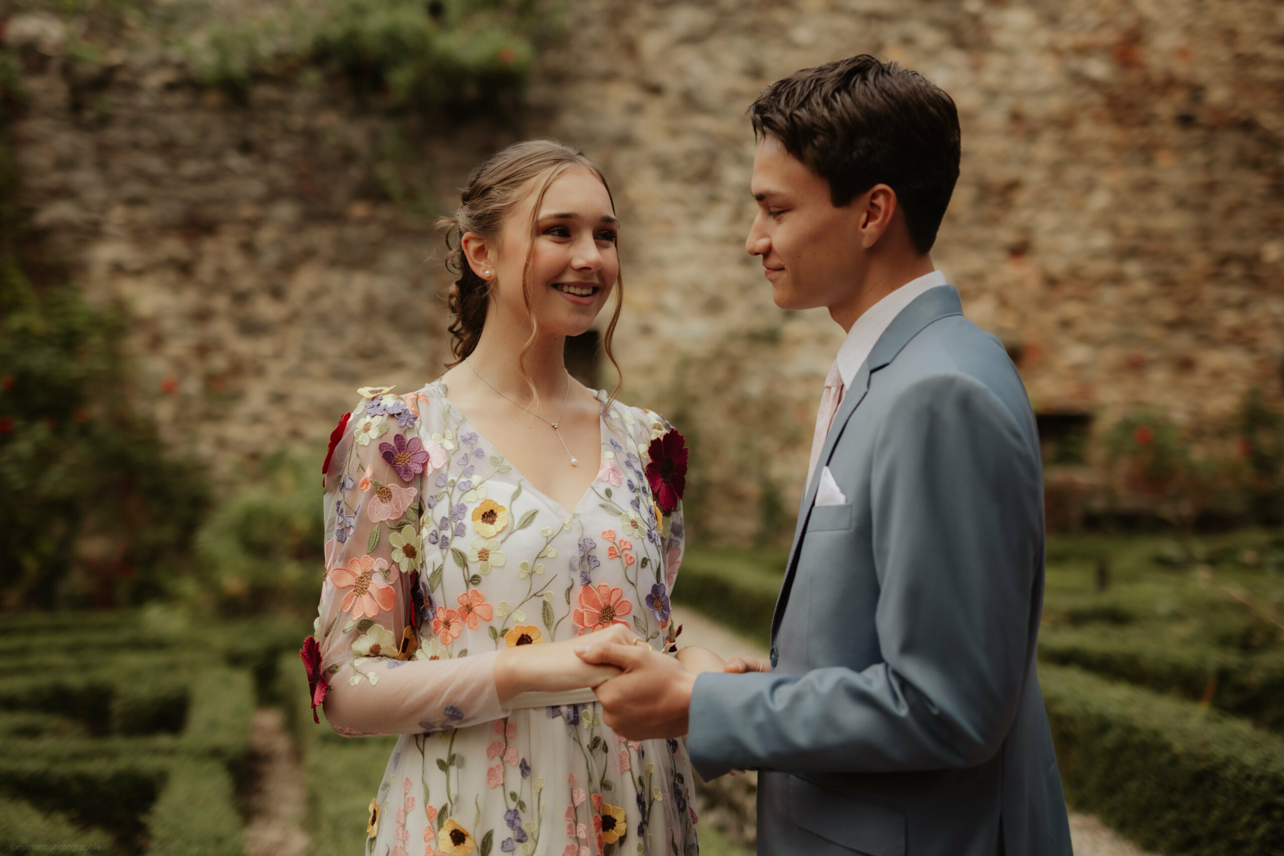 Haendel, c’est pour celle qui ne veut pas d’une robe blanche. Des fleurs brodées, de la couleur, du caractère : une robe qu’on remarque et qu’on n’oublie pas.