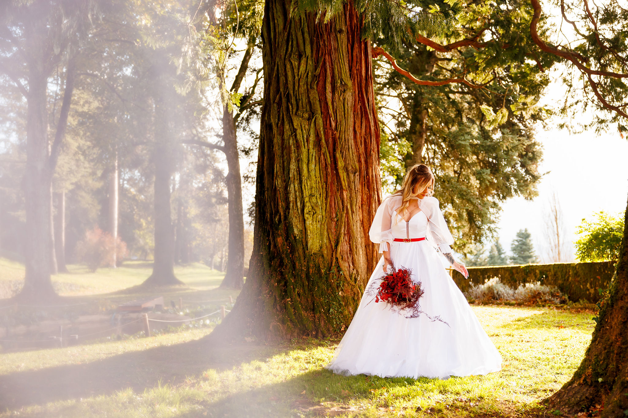Les matières nobles, comme le tulle, le satin ou la dentelle brodée, se déploient en couches harmonieuses pour dessiner une silhouette éclatante. Le corsage ajusté souligne la taille avant de s’ouvrir sur une jupe ample, évoquant la grandeur des contes de fées tout en conservant une modernité subtile. Chaque couture, chaque broderie est le fruit d’un savoir-faire minutieux, alliant tradition et précision pour offrir un rendu d’une rare élégance.