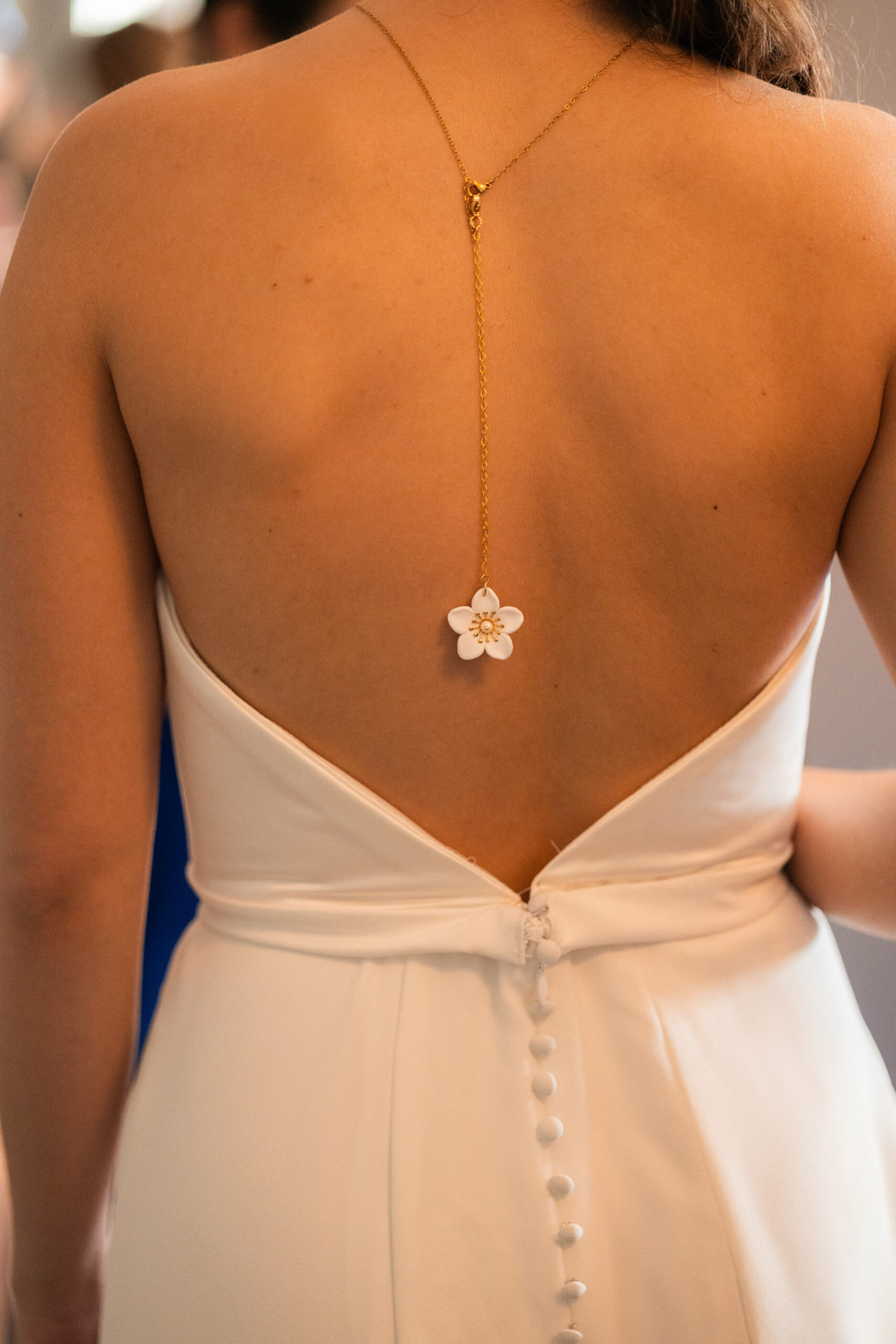 Le dos en V profond, qui s’arrête à la taille, apporte une touche de féminité et d’élégance tout en allongeant la silhouette.